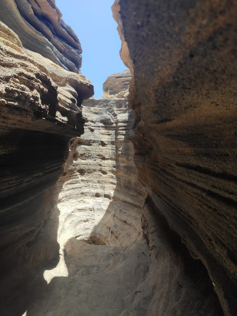 Nos dirigimos a continuación para visitar las Grietas Volcánicas de Lanzarote, entre el pueblo de Tías y San Bartolomé. Estas curiosas formaciones geológicas nos dejan gratamente sorprendidos. Están a la derecha de una carretera en la ladera de una montaña, «El Volcán de la Montaña Blanca». Según leemos se forman por el enfriamiento de la lava con el contraste de la roca que la soporta. Podemos acceder dentro de ellas y producen una sensación de estar en el interior de la tierra, lo más parecido a entrar en una lengua de lava fría, pudiendo verse los distintos estratos de lava de las sucesivas erupciones. La experiencia nos parece una maravilla que no hay que perderse en la visita a Lanzarote.