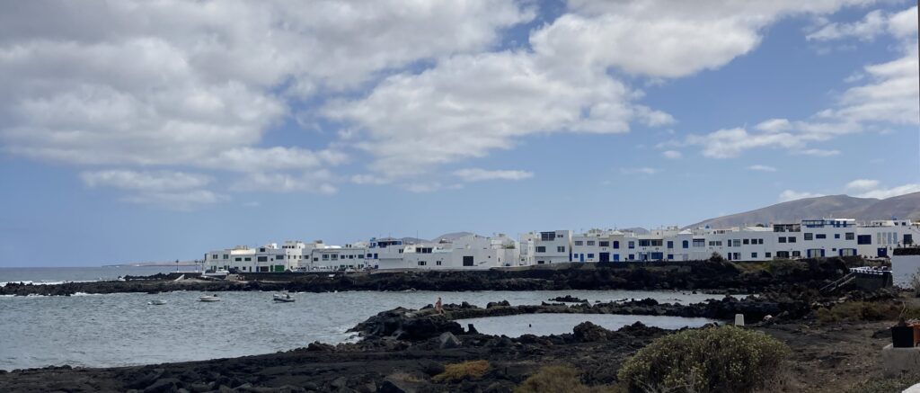Este quinto día decidimos visitar el Pueblo de Teguisse, una villa que está declarada uno de los pueblos más bonitos de España. Destacan sus casitas blancas típicas isleñas. Visitamos la Iglesia que nos sorprende por su arquitectura sencilla con paredes blancas muy diferente de lo que conocemos de la Península. Observamos que es un pueblo turístico con numerosos visitantes y muchas tiendas de recuerdos de artesanía de la isla. El pueblo se encuentra muy unido a la historia de la piratería de la isla, narrando varias sangrías, matanzas y hazañas sobre la defensa de la isla en alguna de sus calles como el “callejón de la sangre”.